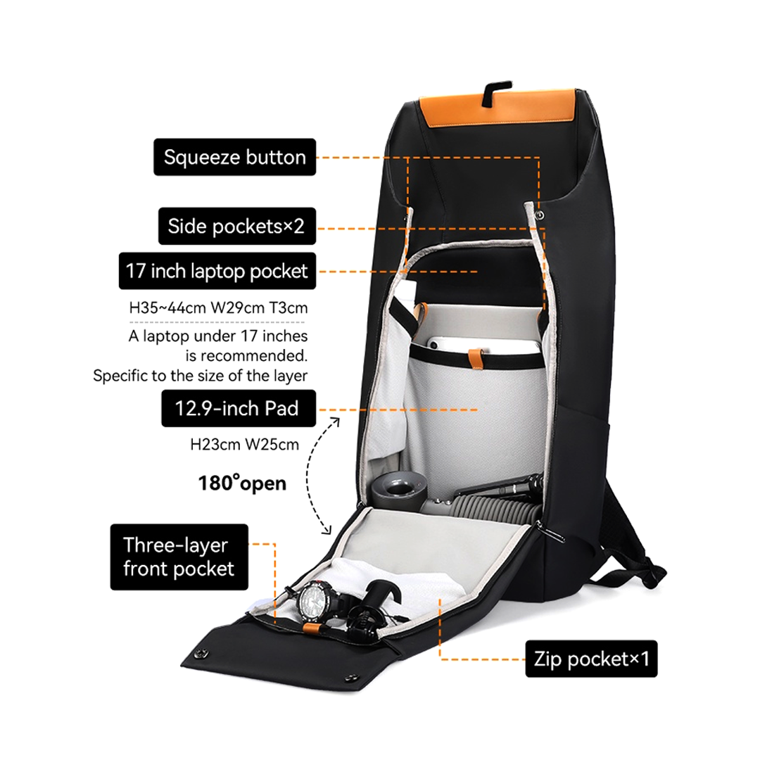 Fits : 17inch laptop (35-44x29x3 cm), 12,9inch tablet (25x23cm)